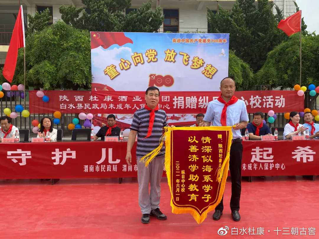 为传递社会正能量、传播公益爱心,在建党百年华诞之际,6月1日,陕西杜康酒业集团赴白水边远山区纵目镇中心小学开展“庆六一”爱心捐赠,营造关爱留守儿童的良好社会氛围。集团党委书记周军、党委委员、酒业公司党支部副书记张宗贤、及渭南市民政局副局长张永创、以及市县镇未成年人保护中心及其各界相关爱心人士共同参与了这项活动。