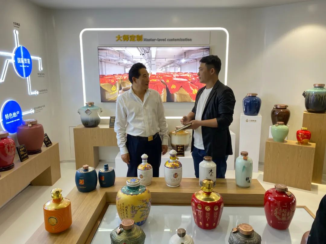 在总经理杨官荣、OEM项目负责人杨宇的带领下,董事长张红军一行参观了川酒品牌文化展厅等,认真听取了川酒集团的发展情况,充分了解了川酒浓厚的企业文化底蕴和氛围,仔细察看了川酒的制作工艺及精细化管理流程。