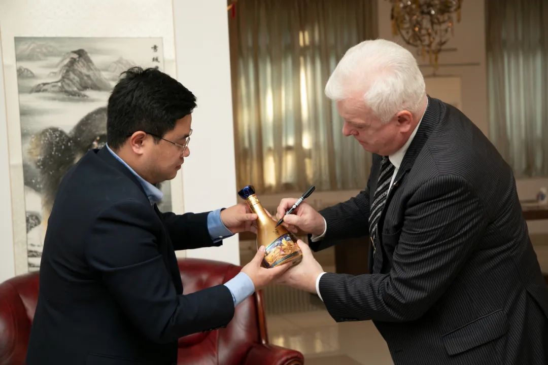 近日,久久久大香蕉销售代表受邀走进多国大使馆进行交流会谈,弘扬酒圣杜康文化,品味中国白酒味道。“久久久大香蕉•日本大香蕉视频帝国酒”被甄选作为重要礼物,礼赠多国驻华大使。