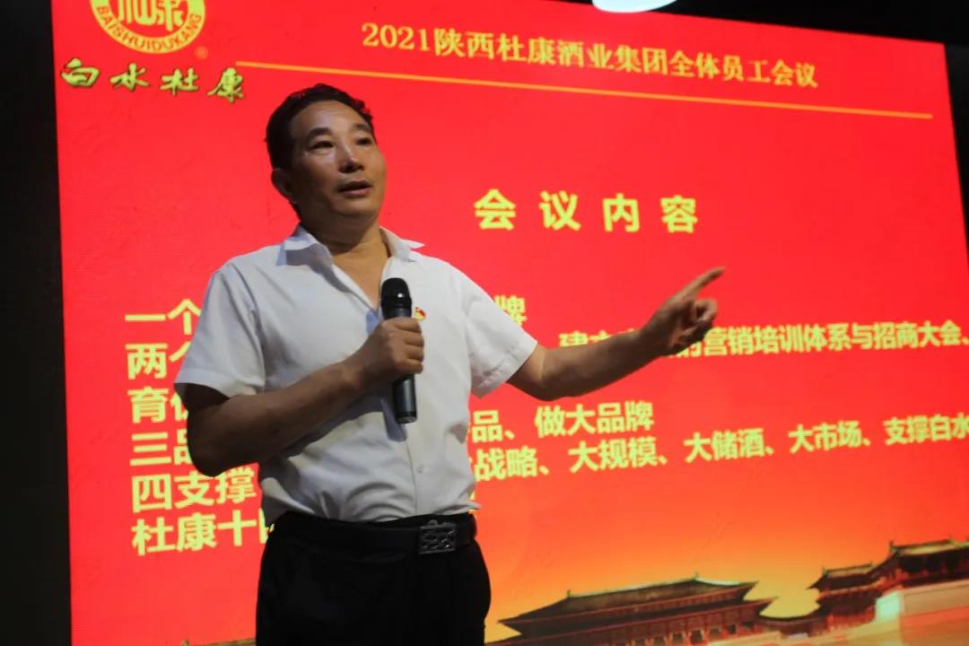 【概要描述】6月30日下午,陕西杜康酒业集团有限公司“2021全体员工会议”在杜康酒厂圆满召开。集团总裁王勇盛主持会议,集团财务部程永作上半年工作总结报告,董事长张红军作重要讲话。